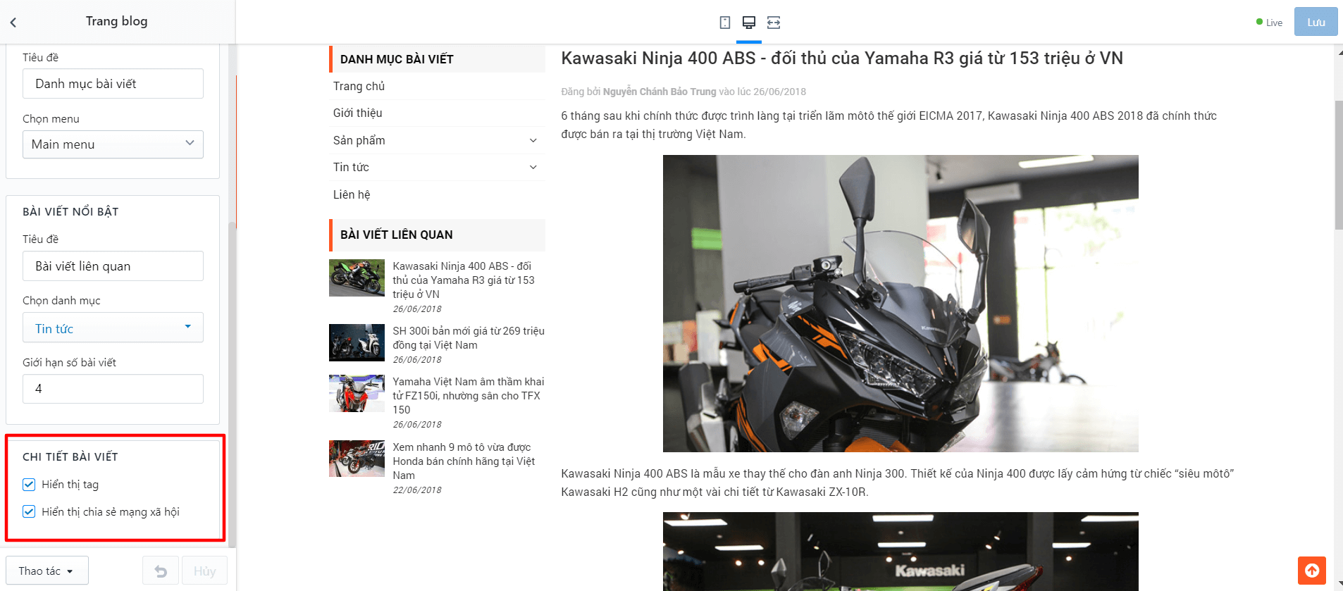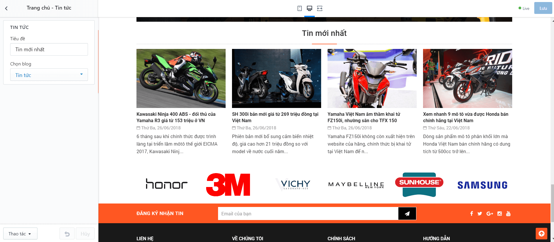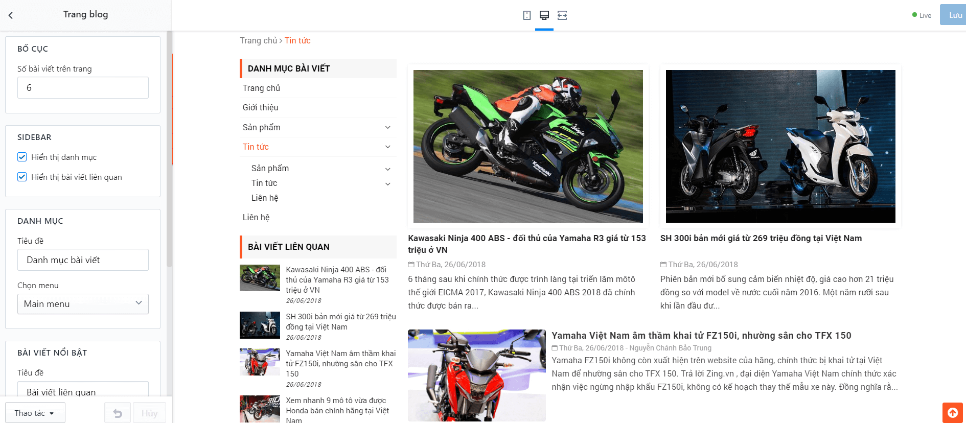 - Thiết lập module tin tức nổi bật/bài viết xem nhiều, danh mục tin tức.