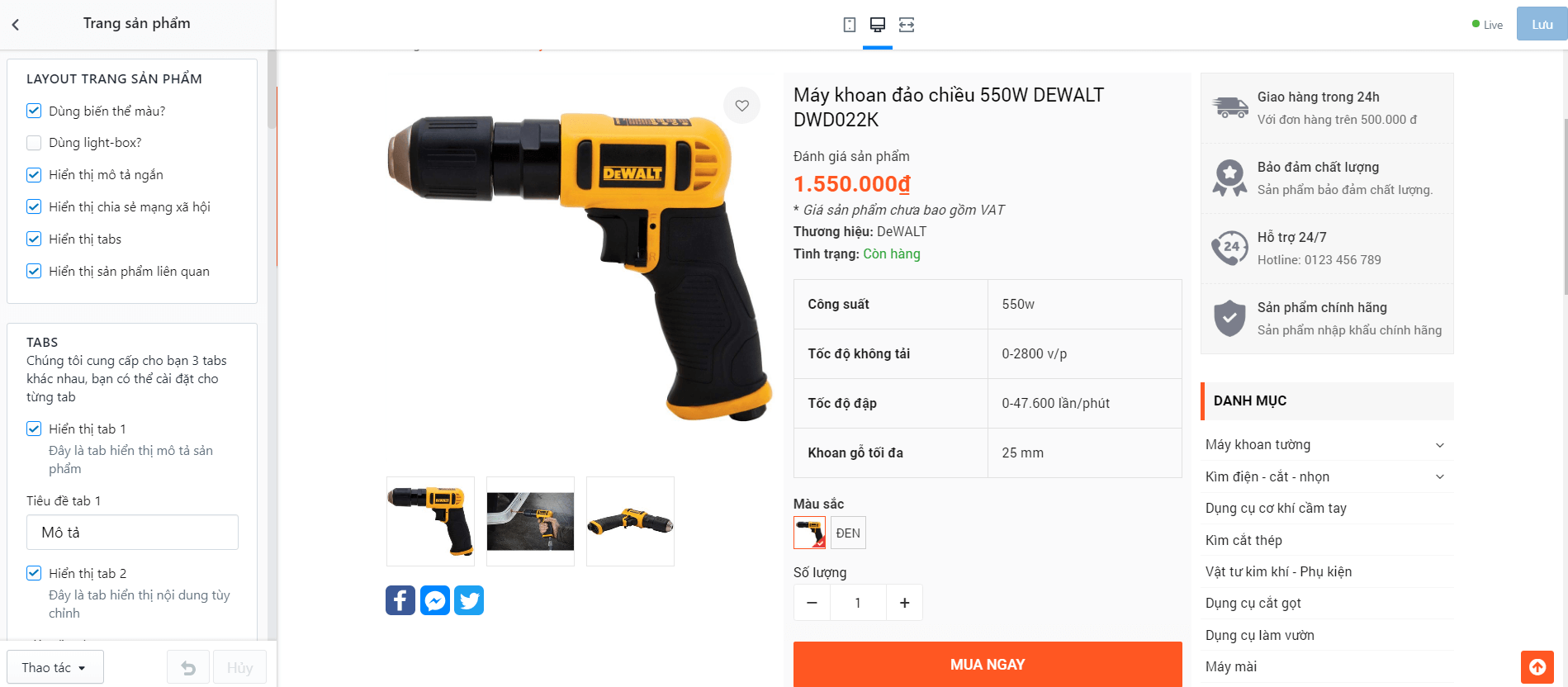 Mục Trang sản phẩm giúp bạn thiết lập hiển thị của trang chi tiết sản phẩm. Chúng tôi cung cấp cho bạn quyền tùy chỉnh mạnh mẽ trang chi tiết sản phẩm.