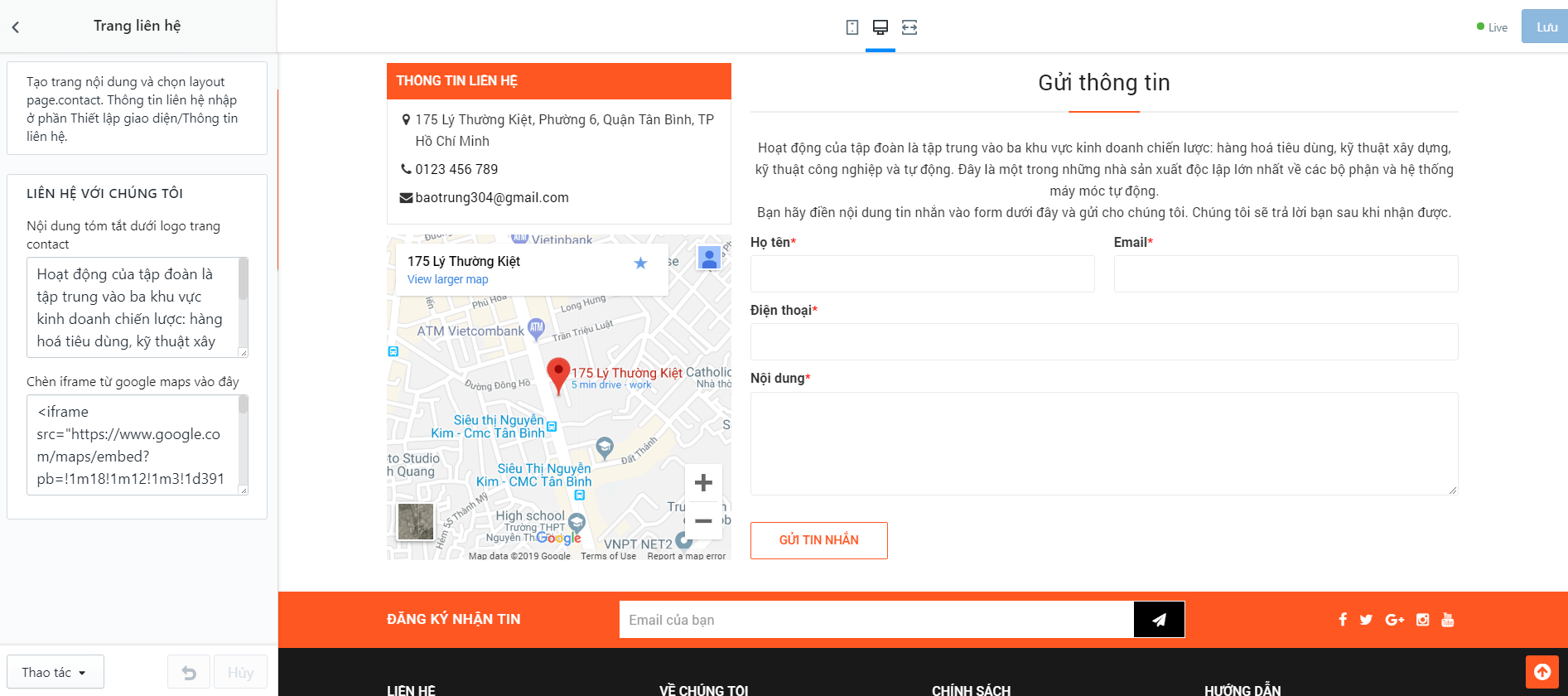 Mục Trang liên hệ thiết lập tiêu đề, mô tả, bản đồ trên trang.