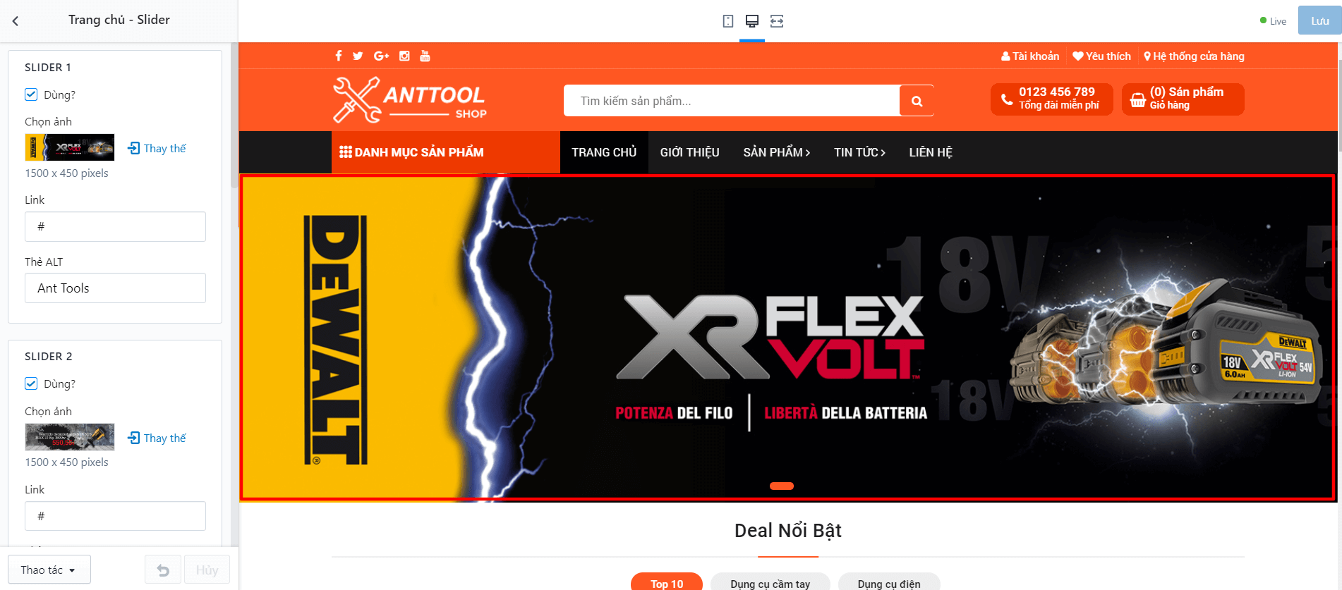 Mục Trang chủ - Slider giúp bạn thiết lập các slide hiển thị trong module đầu tiên của Trang chủ.