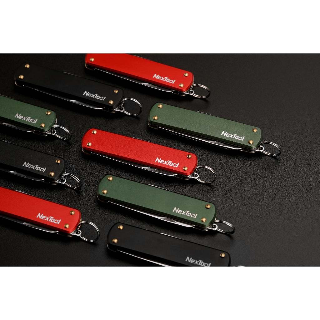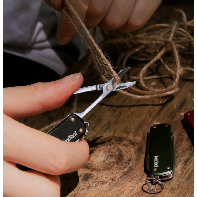 NEXTOOL MINI POCKET MÓC KHOÁ ĐA NĂNG NE141 NE142 NE143 Kích thước: 64.5mmx18.3mmx7.8mm (đã đóng) Vật liệu xử lý: 5052 hợp kim nhôm (vỏ) Vật liệu lưỡi: Thép không gỉ 420J2 Trọng lượng: 28,5g ± 2g Kéo, Dũa móng tay, Tua vít đầu dẹt, Móc chìa khóa và da0 Blade Material: 420J2 Stainless Steel Handle Material: 5052 Aluminum Alloy Blade Finish: Mirror Finish Open Length: 152mm Closed Length: 64.5mm Weight: 29g (Optional colors: Red, Green, Black ) Scissor, Nail File, Flat-head screwdriver, Key ring, and knife