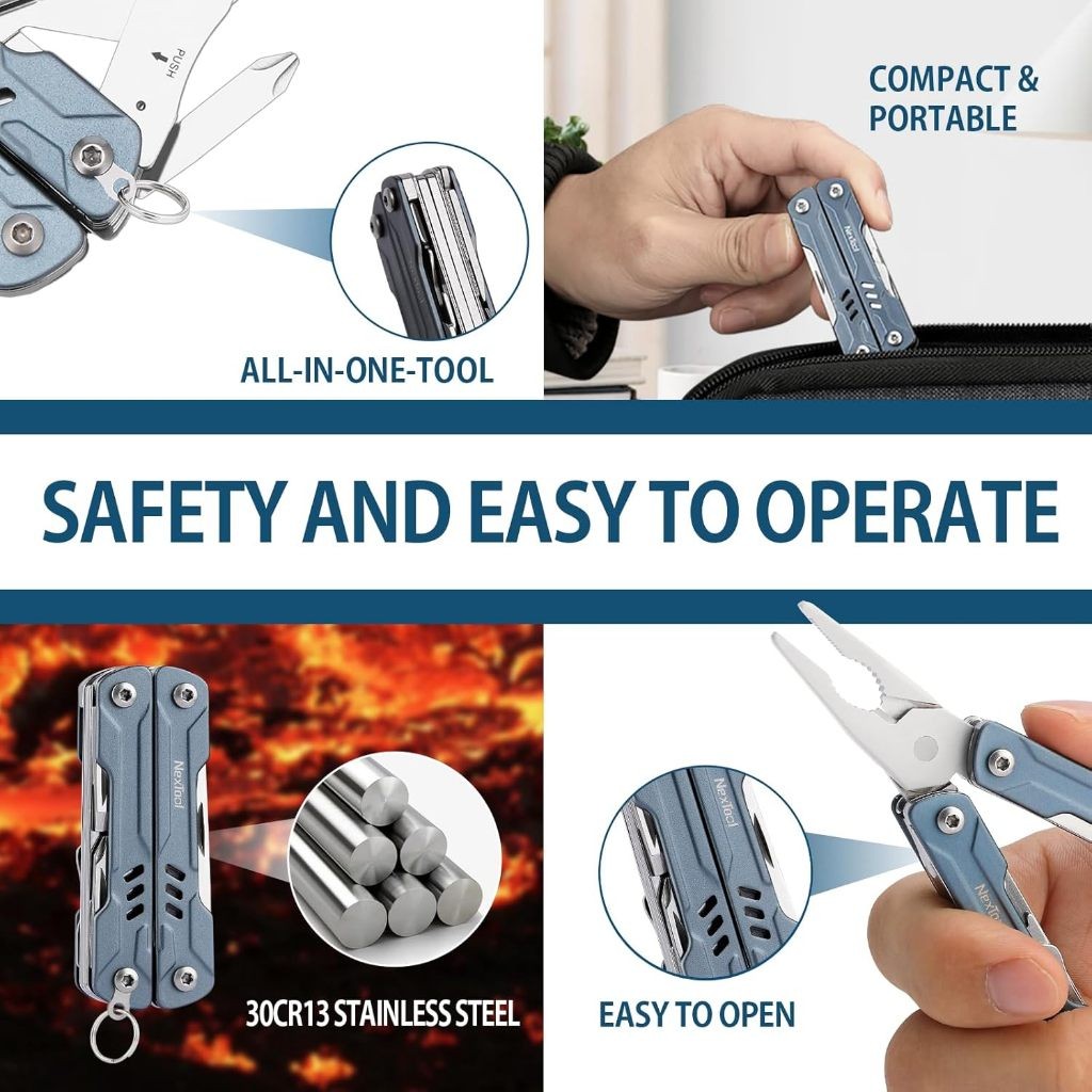 NEXTOOL MINI SAILOR PLIERS MULTITOOL DỤNG CỤ ĐA NĂNG NE20156B NE20156C Kích thước khóa của kìm đa năng mini này chỉ là 67,2x25,3x15,5mm và trọng lượng 0,18lb. Nó rất nhỏ gọn và di động, dễ dàng bỏ vào ba lô hoặc bất kỳ túi nào để mang theo hàng ngày. Được chế tạo bằng thép không gỉ 30Cr13, được xử lý nhiệt giúp nó cực kỳ cứng cáp và đảm bảo độ bền lâu dài. Độ cứng của các bộ phận chức năng chính cao hơn HRC50, với lực cắt mạnh và độ sắc bén, độ bền, khả năng chống mài mòn. Main Material: 420J2/420J1 Closed Size: 67.2x25.3x15.5mm N.Weight: 84±2g Needle Nose Plier, Regular Plier, Mini Wire Plier, Scissors, Knife, Phillips Screwdriver, Hanging Hole, Sim Card Needle, Flathead Screwdriver, Bottle Opener, Can Opener