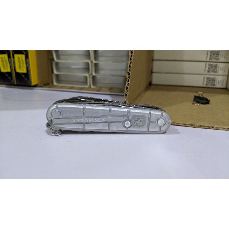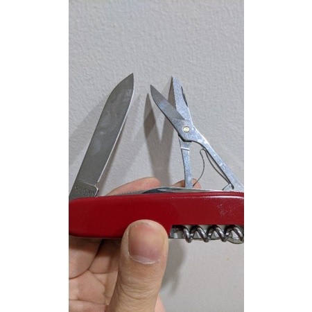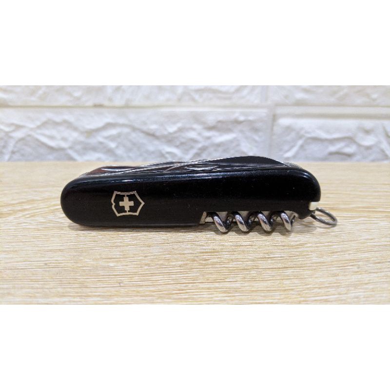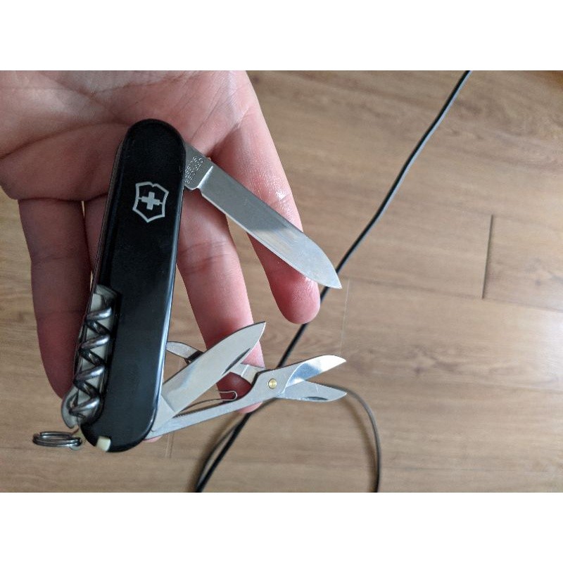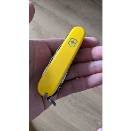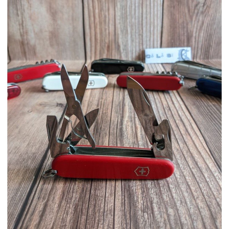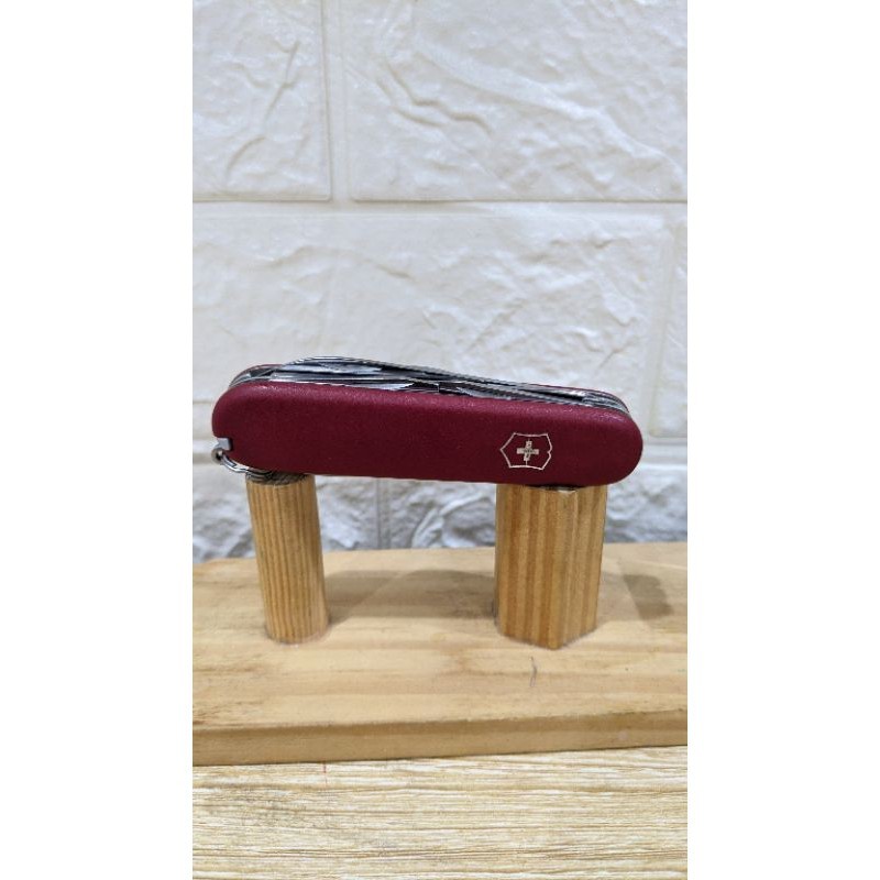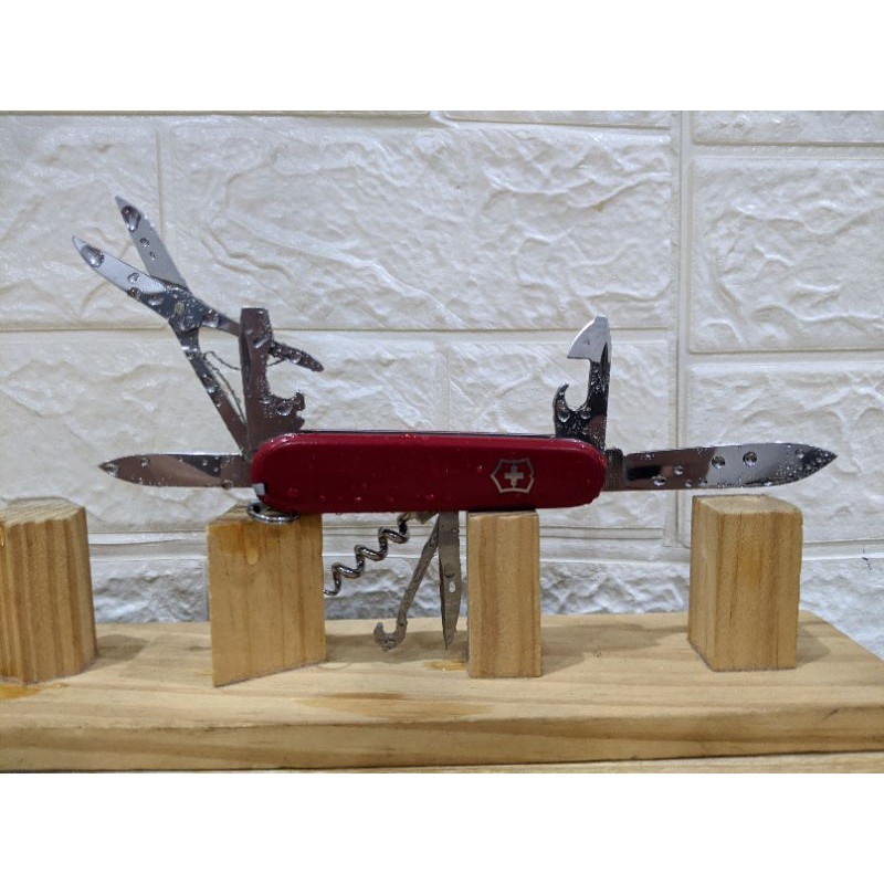 Hàng Victorinox chuẩn, đã qua sử dụng. HÌnh thức đẹp, các tool tốt. Đặc điểm: - Cỡ: Vừa ~ 9cm - Số chức năng: 15 - Kíh thước + Dài: 91 mm + Rộng: 27 mm + Dày: 18 mm Chức năng: 1. Lưỡi dao lớn 2. Lưỡi dao nhỏ 3. Mở đồ hộp 4. - kiêm Vít hai cạnh nhỏ 5. Mở nắp chai 6. - kiêm Vít hai canh lớn 7. - kiêm Tuốt dây điện 8. Mở nút chai rượu vang 9. Kéo 10. Móc đa năng 11. Dùi 12. - kiêm Kim khâu bao 13. Tăm 14. Nhíp 15. Móc treo chìa khóa