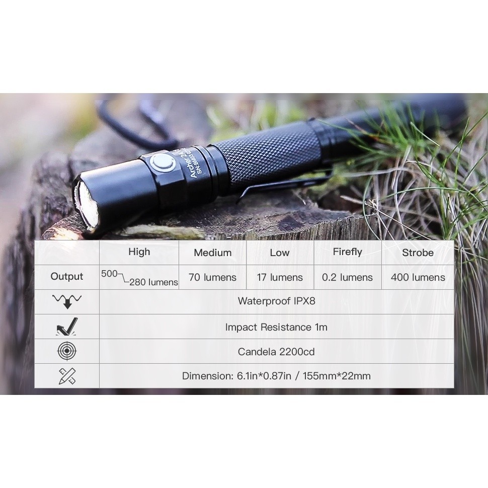 THRUNITE ARCHER 2AA V3 ĐÈN Có chiều dài 6" và chiều rộng chưa đến 1" Nút kép chiến thuật được đặt tốt - Dễ dàng bật / tắt đèn Với công suất 500 lumen và chiếu xa 93 mét, (không bao gồm AA) Chống nước IPX8 và chống bụi, Sử dụng LED CREE XP-L2 và có 5 chế độ (chi tiết vui lòng xem ảnh) Được chế tạo từ thân nhôm cấp hàng không vũ trụ với lớp hoàn thiện chống mài mòn cứng anốt loại III cấp quân sự. CổLỗSĩ EDC | DIY | CAMPING | BOTTLE | FLASHLIGHT | STANLEY | YETI |LEATHERMAN |GERBER | WORK SHARP |THRUNITE | OLIGHT | OZARK TRAIL | CAMELBAK | MORAKNIV |VICTORINOX |KNIPEX |WERA |BOSCH |LANSKY
