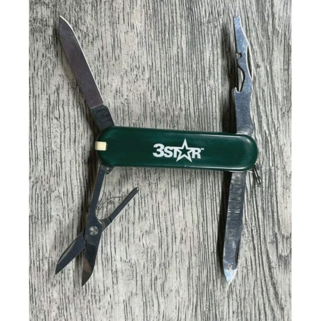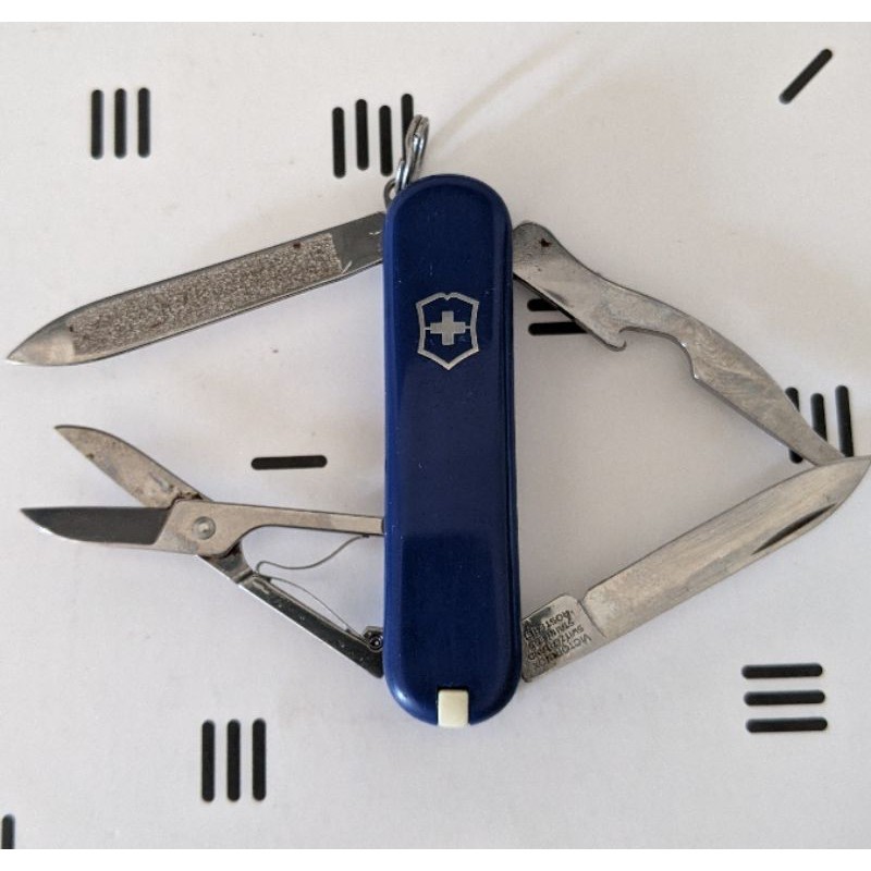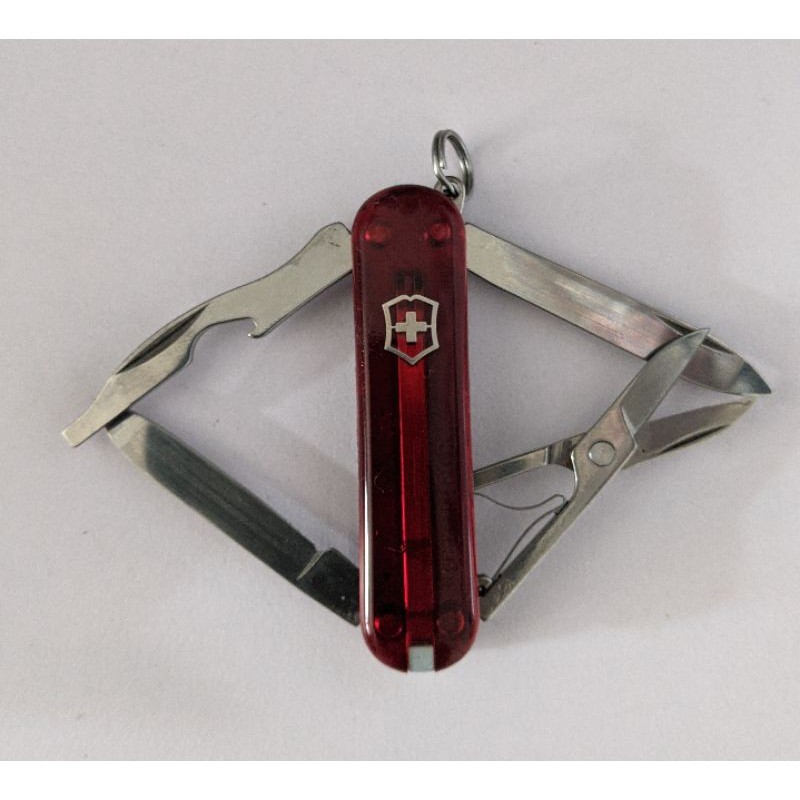 Hàng đã qua sử dụng Bao gồm: - Vòng chìa khóa - Tăm xỉa răng - Nhíp - Lưỡi dao nhỏ - Cái mở nắp chai - Tuốc nơ vít Phillips 0/1 - Giũa móng tay - Tuốc nơ vít 2,5 mm - Cây kéo Kích thước Chiều cao 10,5 mm Khối lượng tịnh 30 g